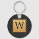 Elegant Black Gold Classy Monogram Initial Script keychain. Features a luxury black and gold diamond pattern background.