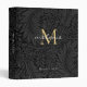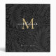 Elegant Black Gold Floral Script Monogram Binder