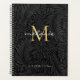 Elegant Black Gold Floral Script Monogram Calendar Planner