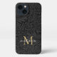 Elegant Black Gold Floral Script Monogram iPhone Case