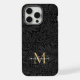 Elegant Black Floral Gold Script Monogram iPhone 15 Pro Max case.