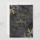 This elegant wedding invitation features black floral bouquets set off with gold faux foil greenery in two corners, on a background image of black watercolor. The customizable gold-coloured text combines serif, italic and handwriting fonts. The reverse side features a matching black and gold floral and watercolor design.