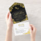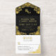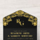 Elegant Black Gold Foil Roses Monogram All In One Invitation