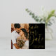 This exquisite save our date postcard design features real gold foil calligraphy, and a cherished photo, making it a keepsake that beautifully captures your love story and the anticipation of your upcoming celebration. Customize with your own detials.