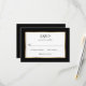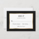 Elegant black and gold wedding RSVP card featuring your desired response date and custom accept/decline wording inside a gold frame. Matching items available.