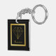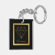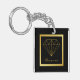 This modern keychain features a black and gold geometric design with a diamond and a customizable name at the bottom.