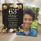 Elegant Black Gold Glitter 63rd Birthday Photo Invitation