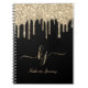 Elegant Black Gold Glitter Drips 2 Monogram Script Notebook