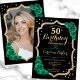 Elegant Black Gold Green Photo 50th Birthday Invitation
