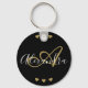 Elegant Black Gold Hearts Script Monogram Name Keychain