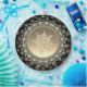 A single perfect ice crystal, set in gradient hues of gold; framed by a laced snowflake design...gives almost a snow globe like effect. The ice crystal is actually a template, allowing you to replace with a photo of your family or any image of your choice, should you prefer.