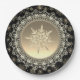 Elegant Black & Gold Ice Crystal Snowflake Paper Plate