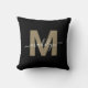 Elegant Black Gold Initial Name Monogram Throw Pillow
