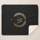 Elegant Black Gold Laurel Wreath Monogram Sherpa Blanket