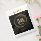 Elegant black and gold 50th wedding anniversary favour bag. Design features gold leaves, number 50 and script calligraphy names. Click personalize to add your details or edit using design tool for further editing.