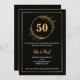 Elegant Black Gold Leaf 50th Wedding Anniversary Invitation