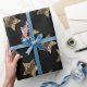 Elegant Black Gold Look Christmas Stars Pattern Wrapping Paper
