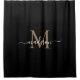 Elegant Black Gold Monogram Feminine Script Name Shower Curtain