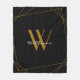 Elegant Black Gold Monogram Geometric Name Script Fleece Blanket