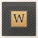 Elegant Black Gold Monogram Initial Script Modern Glass Coaster. Features a luxury black and gold diamond pattern background.