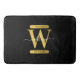 Elegant Black & Gold Monogram Modern Script Bath Mat