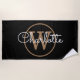 Classic black and gold monogram beach towel. You can personalize the name, monogram and customize the font and colours to create your own unique design. Designed by Thisisnotme©