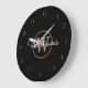 Elegant Black Gold Monogram Script Name Large Clock