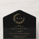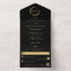 Elegant Black & Gold Monogram Wreath Wedding All In One Invitation