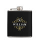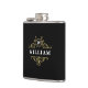 This stylish flask features a classic black and gold design with an elegant gold emblem and a customizable monogram. Modify the name and initial to create a unique gift for groomsmen, Father’s Day, or a birthday.