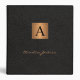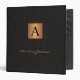 Stylish chic monogrammed office or school work organizer binder featuring a faux gold copper metallic square and dividers over a stylish solid black faux leather look (printed) background. ++++++++++++++ Suitable for small business, home office, corporate or independent business professionals, school, personal branding, portfolios or stylists, managers, teachers, students.