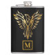 Elegant Black & Gold Phoenix Rising Monogram Hip Flask