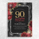 Elegant Black Gold Red Floral 90th Birthday Party Invitation