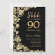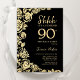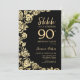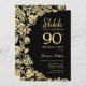 Elegant Black Gold Roses Surprise 90th Birthday Invitation