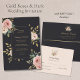 Elegant Black & Gold Roses Wedding Flat Menu