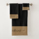 legant black gold script Merry Christmas Bath Towel Set. Personalize text.