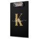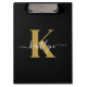 Elegant Black Gold Script Monogram Clipboard