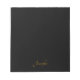Elegant Black And Gold Script Personalized Monogram Notepad. The sticky notes are minimalist designed with customizable solid black background and name is across the lower front in stylish faux gold script lettering. Makes perfect gift idea for friends and coworkers.