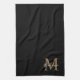 Elegant Black Gold Script Typography Monogram Kitchen Towel