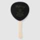 These elegant wedding program hand fans feature a faux gold typography design on a black background. Personalize with the bride and groom names and wedding date on the front and the details of your ceremony on the back. Designed by Susan Coffey.