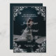Elegant Navy Blue Wedding Invitation & Romantic Design with picture of the newlyweds