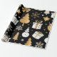 Elegant Black Gold White Christmas Line Art Wrapping Paper