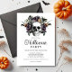 Elegant Black Gothic Floral Skull Halloween Invitation.