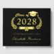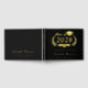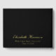Elegant black graduation party guest book featuring real gold foil, "Class of" in an illustration of laurel wreath incorporating a grad cap and diploma, the graduate's name in a formal script, and "Congratulations" and their school name in classic serif typography. Personalize additional text on the spine and the back.