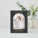 This modern photo graduation party invitation postcard features an elegant black background and big typography with a front geometric photo arch, and graduation party details and return address on the back.