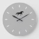Elegant Black Horse Silhouette on Silver Grey Large Clock
