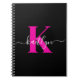 Elegant Black Hot Pink Script Monogram Notebook
