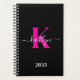 Elegant Black Hot Pink Script Monogram Planner