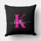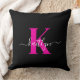 Elegant Black Hot Pink Script Monogram Throw Pillow