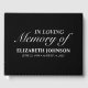 This elegant black guest book is a beautiful way to honour the memory of a loved one. The simple, classic design features the phrase "In Loving Memory" in a beautiful, elegant font. The cover is personalized with the deceased's name and dates, making it a treasured keepsake. The interior provides ample space for guests to share their thoughts, memories, and condolences. This guest book is perfect for any memorial service or celebration of life.