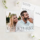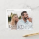 Elegant wedding thank you postcards featuring your full-bleed horizontal wedding photo with "Love and Thanks" in black lettering. Personalize these modern photo thank you postcards with your name for a timeless and sophisticated touch. The back of the photo wedding thank you postcard includes space for your return address and a personal message, making it an effortless way to share your gratitude with guests. Perfect for showcasing your favourite wedding photo while expressing your appreciation.